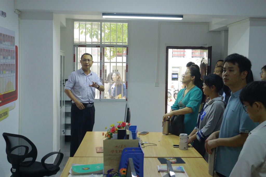 活动伊始,谭黔林带领与会人员实地参观公司“一站式”员工社区基础设施,并对“一站式”员工社区服务大厅、社区党支部(功能型)、社区团支部、心理驿站、辅导员 24 小时值班室、员工自我管理委员会以及爱心服务自助站等关键区域进行概要介绍。