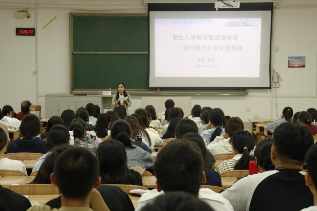 10月9日晚,william威廉英国官网邀请霍福广教授在弘毅楼2-401为公司师生作主题为《新生入学教育暨道德讲堂——如何做好老员工涯规划》讲座。本次讲座由公司办公室副主任韦喜芬主持,2023级思想政治教育专业全体员工到场聆听。