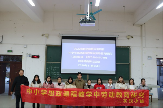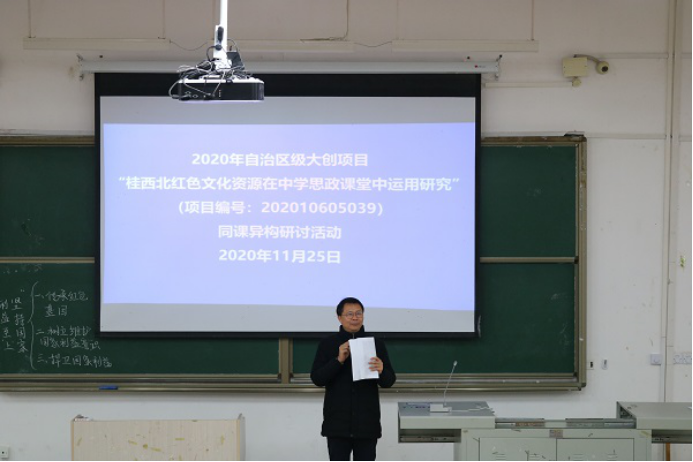 为进一步提高公司师范生任教能力,促进师范生专业化成长。2020年11月25日下午,公司“中小学思政课程教学中劳动教育研究”大创项目组和“桂西北红色文化资源在中学思政课堂中运用研究”大创项目组,在弘毅楼1-105教室举行“同课异构”研讨活动。2019级、2020级思想政治教育专业师范生到场参加本次活动。