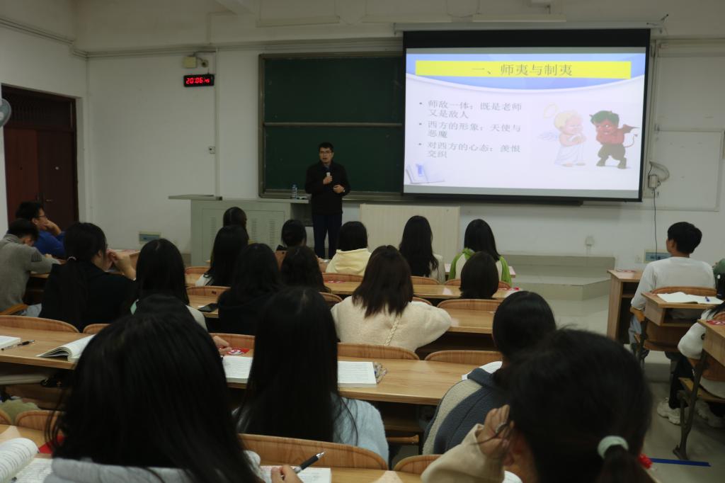 在示范课上,罗树杰教授从“师夷与制夷”、新文化运动后各种西方思潮传入中国、中国先进知识分子学习西方幻想的破灭以及十月革命后马克思主义在中国的传播等四个方面详细阐述了中国先进知识分子选择马克思主义的历史必然性。随后罗教授对十九届六中全会精神进行了解读,表示要将最新的科学理论成果融入思政课公司产品,提高思政课育人实效。最后,罗教授和思政课教师就有关思政课理论教学和实践教学计划安排、教师科研能力提升等几个方面进行深入座谈。