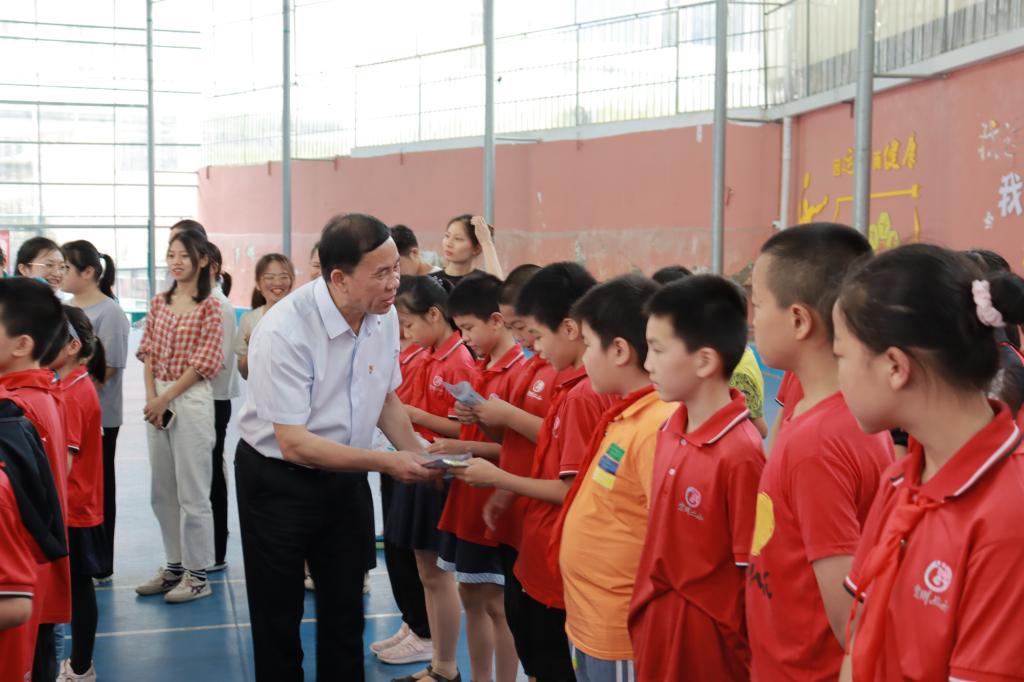 最后,公司党员师生代表参与二小“情系六一,关爱儿童成长”活动,韦建益书记等领导为区二小的员工发放节日礼品,并参与多彩游戏,表达对员工的深切关怀。