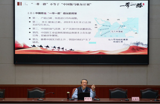 10月27日晚,银建军教授在弘毅楼1-205报告厅作“一带一路与中华民族伟大复兴”人文素养专题讲座,公司2019级全体员工到场聆听。