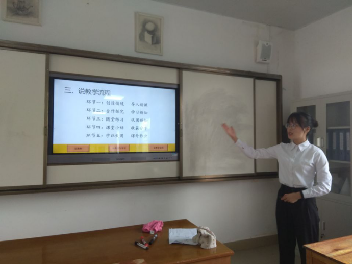 训练过程中,备赛的两位选手争先呈现各自的说课技巧、模拟上课流程和板书设计艺术。指导老师从不同角度,紧扣评分标准,对俩位选手的每一细节,都进行细致点评,提出纠偏意见,甚至亲自上台示范讲解。使备赛选手的言态表达能力得到提升,说课设计结构合理,模拟上课流程环环相扣,板书设计更具艺术性。