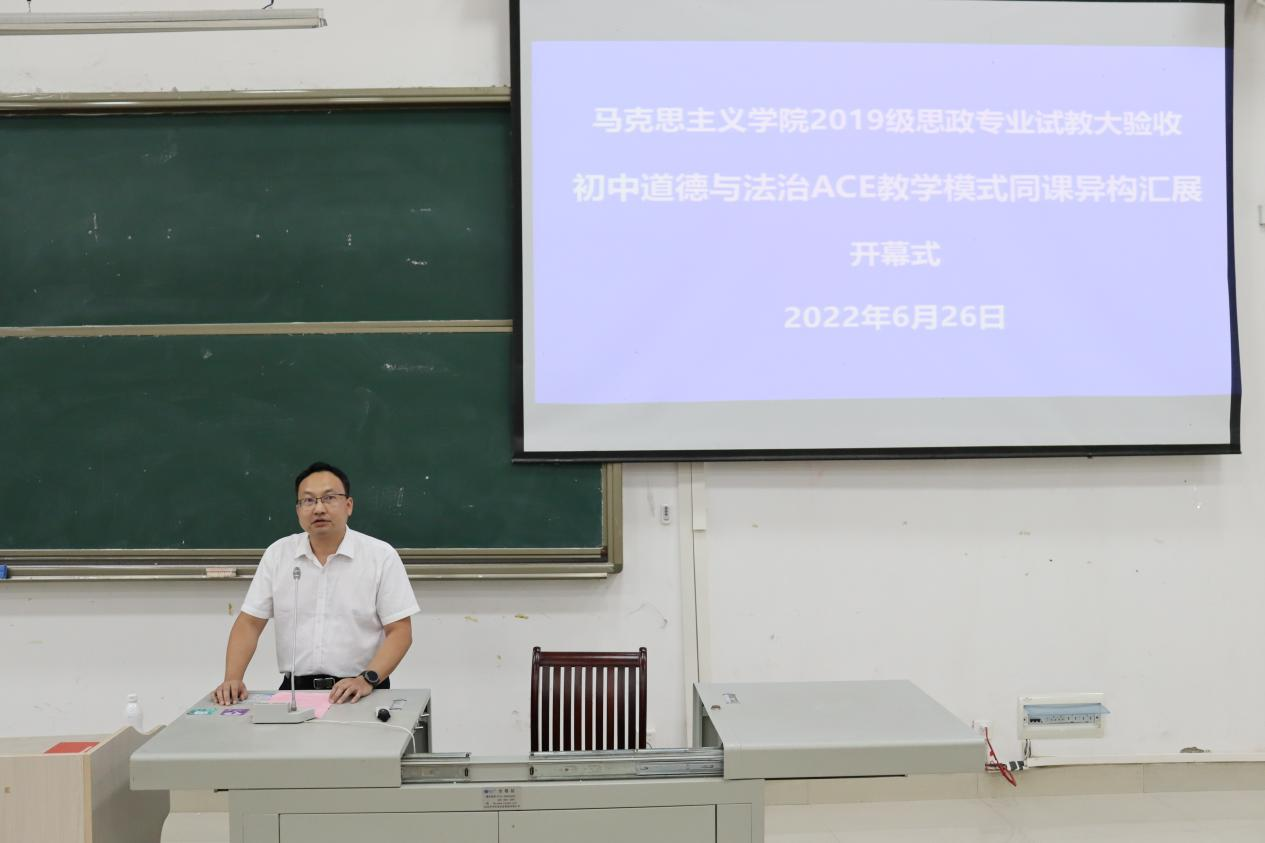 开幕式上,韦宏思副经理指出举办2019级思想政治教育专业ACE教学模式同课异构试教大汇展活动,是贯彻习近平总书记3·18重要讲话精神,落实立德树人根本任务课程建设的有益探索,是促进高校与中小学之间的交流互动,积极学习探讨的大平台,是推进思政课一体化建设的重要表现。他希望同学们能够积极参与活动、认真观摩学习和及时总结提高。