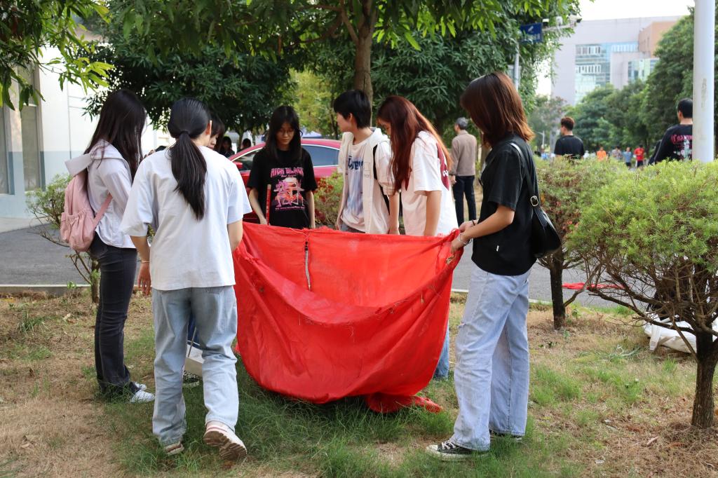 活动过程中,马院师生互帮互助、共同协作,积极利用扫把、铁耙等清洁工具将落叶清理进垃圾袋中。在大家的共同努力下,空草地焕然一新。