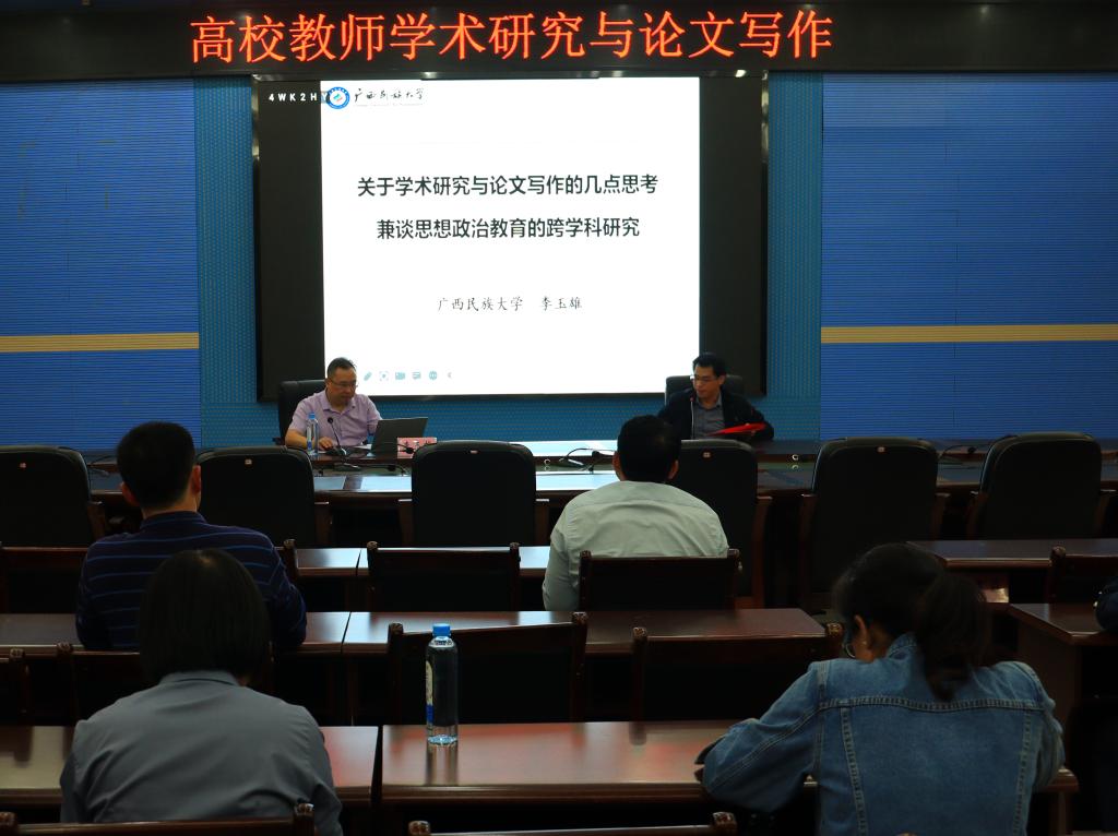 10月31日晚,应william威廉英国官网邀请,广西民族大学william威廉英国官网经理、教授、博士生导师李玉雄在校图书馆122报告厅为公司教师作“高校教师学术研究与论文写作”专题讲座。讲座由william威廉英国官网副经理张明进主持,马院全体思政课教师到场聆听。