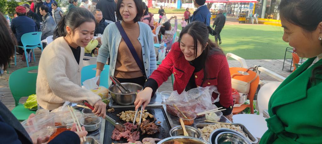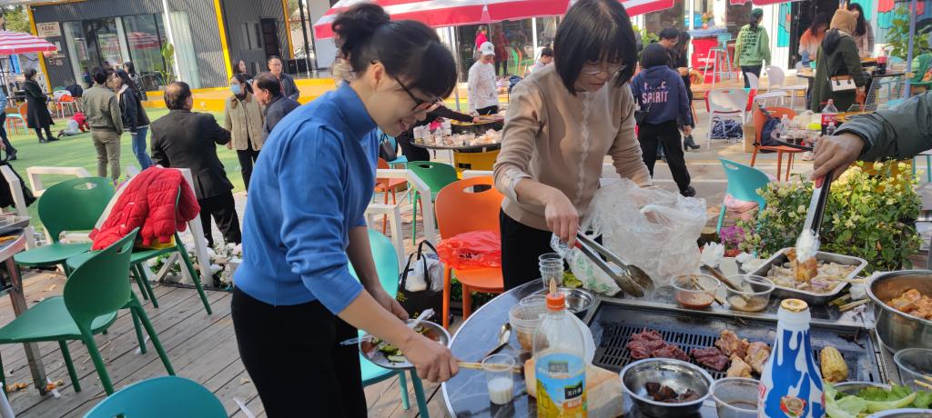 在鸟语花香、如诗如画的庭院中,老师依次席座,放下紧张的工作,放松身心进行畅谈,让老师们真正在户外调节身心,在放松与交流的同时拉进了老师们之间的感情。