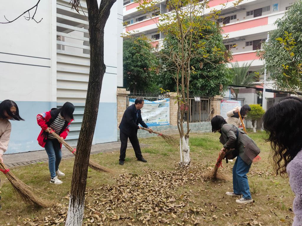 在马院领导班子的带领下,全体工会成员干劲十足,全面打扫马院责任卫生区各个角落卫生死角,清理地面上的小纸片和杂物,扫除数目下的枯枝落叶。