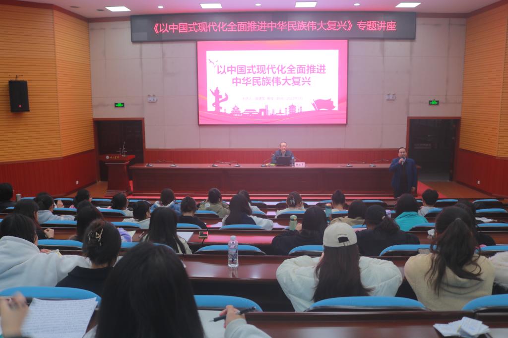 讲座上,银教授从中西、历史、现实、将来四个维度深入展开本次讲座的主题讲解,从深刻理解中国式现代化的内涵、在促进人的现代化、在实现全体人民共同富裕、在协调物质文明和精神文明、在促进人与自然和谐共生、在和平发展的道路中推进中华民族伟大复兴六个方面分别阐述了以中国式现代化全面推进中华民族伟大复兴的内涵和历史性意义。