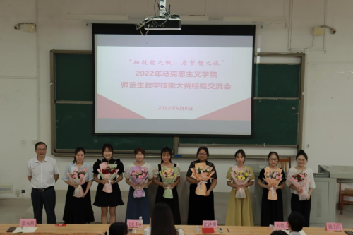 随后,江洪明经理总结发言,指出要将时事热点、地方特色融入到思政课堂中,并强调要增强思政课上的思想性、理论性和亲和力、针对性。最后,江经理为指导老师与获奖同学送上鲜花表示祝福。