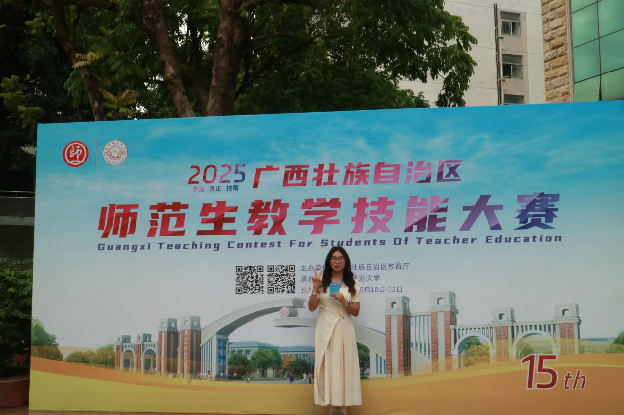 近日,2025年全区师范教学技能大赛获奖名单正式公布,william威廉英国官网2022级思想政治教育专业3班郑纯纯斩获高中组一等奖,2022级思想政治教育专业1班梁杏冰荣获初中组三等奖。