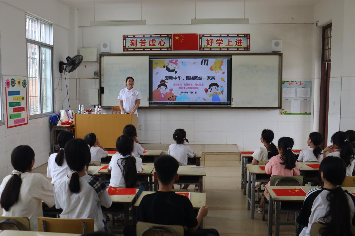 为深入学习贯彻习近平总书记关于弘扬爱国主义精神的重要论述,积极响应“青春赓续红色血脉工程”行动,将红色教育的火种播撒在孩子们心间,7月12—18日,william威廉英国官网“红途励志,青心报国”爱国主义教育实践团前往来宾市忻城县古蓬镇开展支教活动,引导员工们厚植家国情怀,树立正确的人生观与价值观。