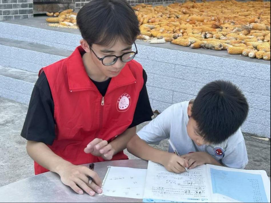 实践团开展“暖心课堂”辅导送教活动。“老师,这道题怎么做呀?老师,这个我不会。”在小朋友们一声声的呼唤下,实践团的成员们调动所学知识,为小朋友们辅导功课,完成知识的传递。